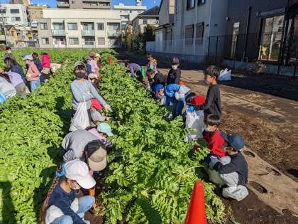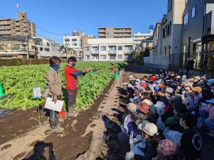 先日の社会科見学に引き続き、校外学習に出掛けました。今回は大根ほりです。「おふくろ大根」という種類の大根でした。続く
