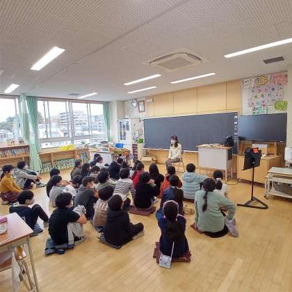 若林小では地域の方をお招きして、素話(詩や話の語り)をしていただいています。今日は4年生。巧みなかたりで、知らずしらずのうちに、引き込まれてしまいます!