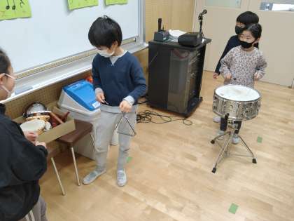 2年生は、打楽器のリズムを色々な楽器で練習しています。