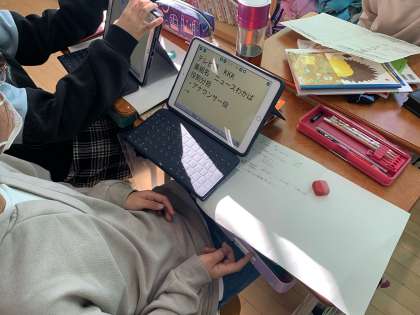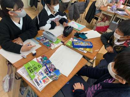 ?社会科では情報産業について学習しています。テレビのニュースが放送されるまでの過程を体験するべく、自分達で3分間のニュース番組を作る計画を立てました。今日は情報収集と編集会議です。ニュースの内容を決めて、取材相手も決めました。さて、取材相手のアポはしっかりととれるでしょうか。