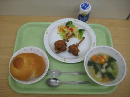 ミルクパン フライドチキン カラフルサラダ ABCスープ 牛乳