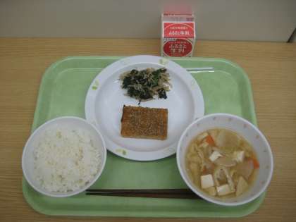 ごはん 松風焼き ほうれん草の磯和え 吉野汁 牛乳