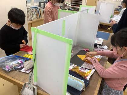 どの子も真剣し、楽しみながら、自分の「思い」を表現して作品を作り上げています。どんな作品が出来上がるのか楽しみです!