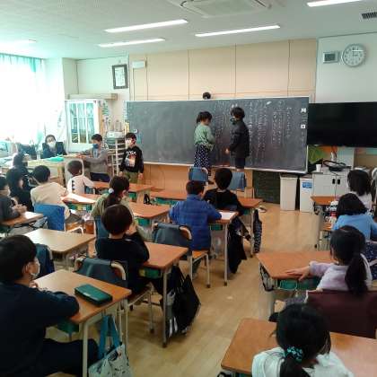 2年生の学級会では、「廊下を走らないようにするためにどうすればよいか」を議題に話し合っていました。より良い生活を実現するために知恵を出し合うのは、学級会の大切な目的の1つです。司会や書記を立て、話し合いの形が身についてきましたね。