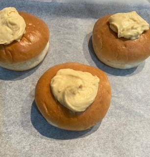 3丸パンに2のビスケット生地をのせる。