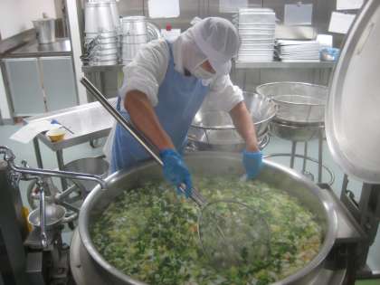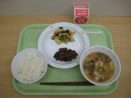 ごはん くじらの甘辛あげ 煮浸し なめこと白菜のみそ汁 牛乳
