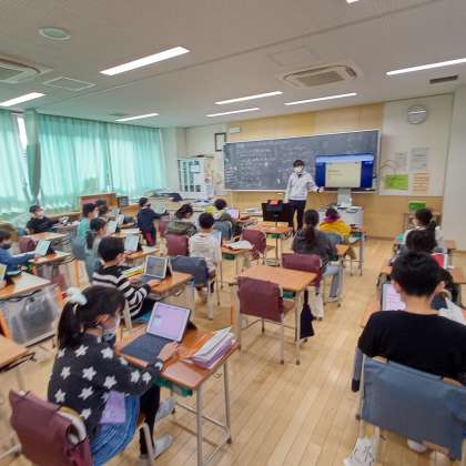 タブレット端末基本的なアプリケーションをだいぶ使い込んできた3年生。今日はローマ字入力の練習です。これからの表現活動には必須のスキルですね。あとは実践あるのみ!