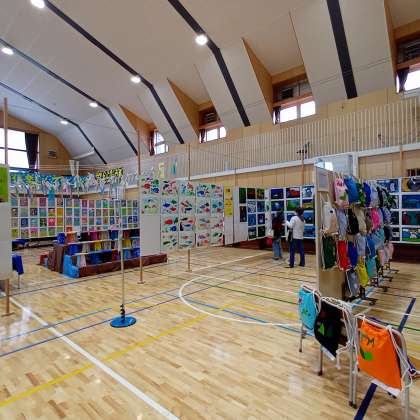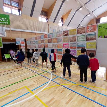 昨日から始まった展覧会。1時間に1クラスずつ順に見て回っています。マナーをしっかり守っていて感心ですね。保護者の方々にも分散参観にご協力いただいており、助かっています。みんなで150倍楽しみましょう!