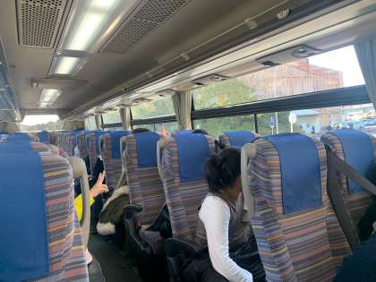 製鉄所での見学を終え、これから学校に向かいます。工場で教えていただいた挨拶(安全にビクトリーのVサイン)で、お別れです。