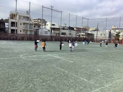風の強い日にたこあげをしました。たこいとを短くしてみたり長くしてみたり、走ってみたり止まってみたりと試行錯誤しながら楽しむことができました。