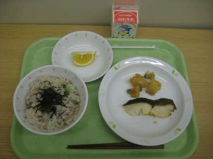 梅茶漬け 銀だらの西京焼き じゃがいもの甘辛に 早香 牛乳