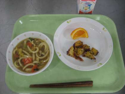 カレーうどん 大学いも デコポン 牛乳