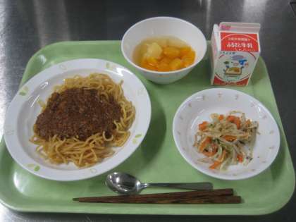 ジャージャーめん 塩ナムル フルーツ白玉 牛乳