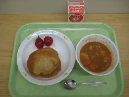 セサミビスキュイパン ビーンズシチュー いちご 牛乳
