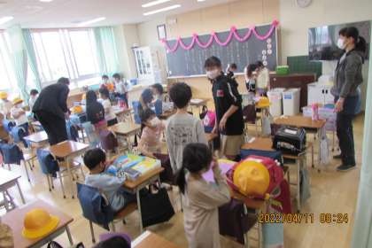 今日からまた1週間が始まります。1年生もはりきって登校してくれていますね!自分の靴箱を覚え、スムースに教室に行けるようになってきました。教室では6年生が朝の準備を手伝ってくれています。