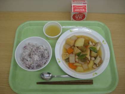 ゆかりごはん 春野菜のうま煮 りんごゼリー 牛乳