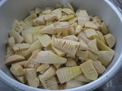 春野菜のうま煮には、今が旬の新たけのこ、ふき、新じゃが、新たまねぎ、さやえんどうが入っています。