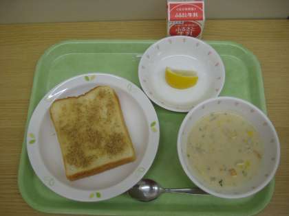 セサミトースト コーンシチュー ニューサマーオレンジ 牛乳