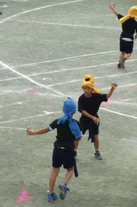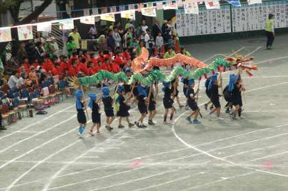 2匹の龍は、先生方の手作りです。退職教員ボランティアの大野先生が手伝ってくださり、何日もかけて作りました。子供たちの踊りを彩っていましたね。