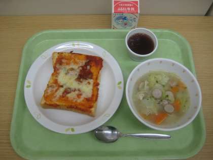 ピザトースト ポトフ ぶどうゼリー 牛乳