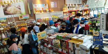 楽しみにしていたお買い物タイム。同日宿泊の中里小学校の皆さんと一緒になり、最後の楽しい時間を過ごしています。