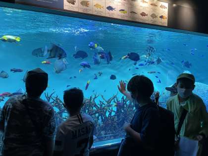 お昼を挟んで、最後は葛西臨海水族園です。午後にもかかわらず子どもたちは元気いっぱい。たくさんの魚たちに癒やされてきました。