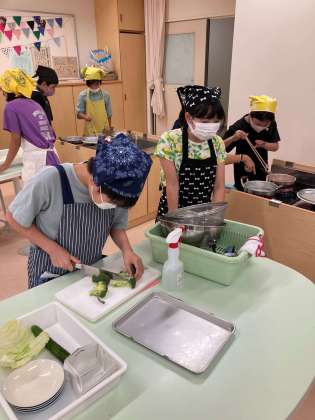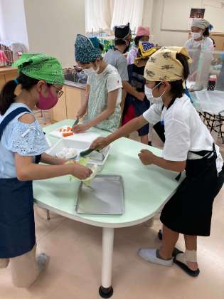 エプロンをつけるところから、協力していました。作るだけでなく、洗い物や配膳など、分担して行っていました。