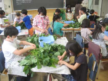 3年生が枝豆を一つ一つ枝からもぎ取るお手伝いをしてくれました。