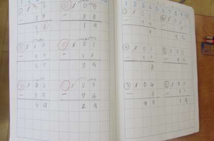 2年生の算数は3桁−2桁に入りました。だんだん難しくなりますね。しっかり桁を