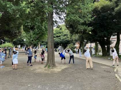 地域の方々のご尽力で、8月21日から30日まで、若林稲荷神社と若林公園で、ラジオ体操が行われていました。朝の6時半とはいえたくさんの子どもたちがお世話になっていて、「ぼくは3回目だ。」「休まず全部来たよ。」などと、カードを見せてくれました。写真は、若林公園での一コマです。最終日の今日は、お土産にお菓子をいただき、みんな一段と嬉しそうでした。地域の皆様、ありがとうございました。