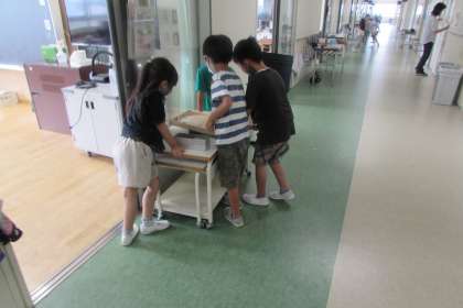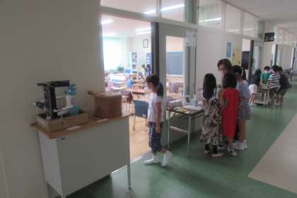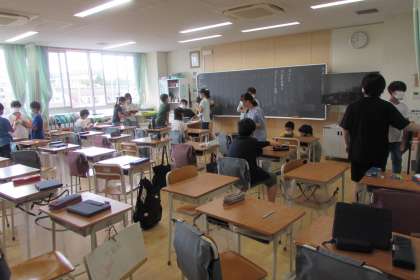 久しぶりにみんなと会って何が楽しいかといえば、もちろん休み時間です。中休みには自由研究を見合ったりトランプで楽しんだりしていました。おしゃべりも良いですね!