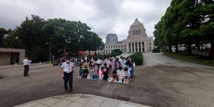 晴れ間の間隙をぬって、集合写真撮影です。うまい具合に全クラスしっかりと撮ることができました。
