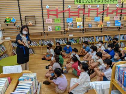 久しぶりの図書の時間です。いつも楽しみにしている司書の先生による読み聞かせ。本日は「きつねの窓」というお話でした。長めの絵本でしたが、しっかり話を聞くことができました。靴揃えもバッチリ!