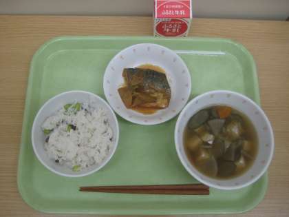 萩ごはん さばのみそ煮 けんちん汁 牛乳