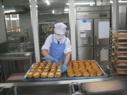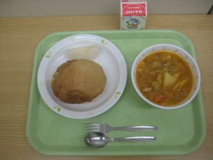 セサミビスキュイパン ボルシチ 梨 牛乳