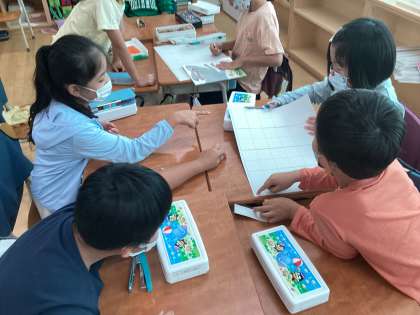 生活科の授業では、牛乳パック、ティッシュの空箱などを使っておもちゃづくりをしています。つくりかたを工夫したり、あそびかたをためしてみたり試行錯誤をしながら活動に取り組んでいます。