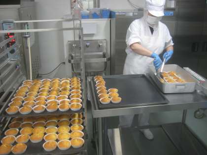 今日の給食は、絵本「ぐりとぐら」に出てくるかすてらを作りました。