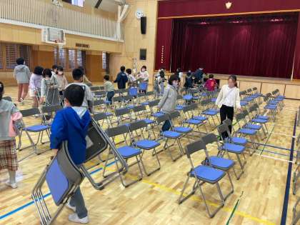 その準備で、中休みにパイプ椅子並べをしそのは5年生。みんなで協力してあっという間に並べていました。さらに、列を整えたり、グラグラしている椅子を変えたり、最後までしっかりチェックしてくれた子たちもいました。