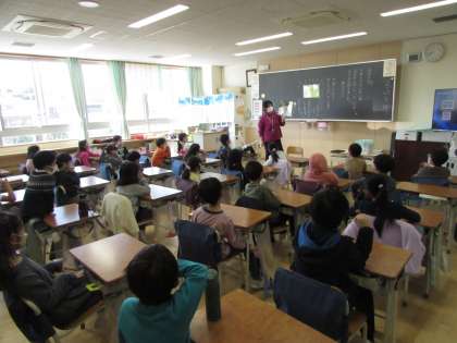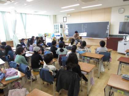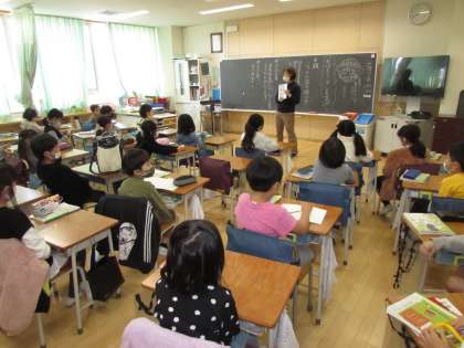 10月17日にちから始まった読書旬間もいよいよ大詰めです。今朝はシャッフル読み聞かせをしました。担任が学年をまたがってランダムにクラスを好感し、読み聞かせをするのです。いつもとは違う先生たちが読んでくれるので、子どもたちも興味津々。教員にとっても、他学年の子どもたちと仲良くなるチャンスになり、お互いにとってWINWINの活動です。