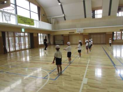 1年生がなわとびの練習を始めました。若小チャレンジ短なわとび編に向けて今から少しずつ練習していきます。先生のお手本を見ながら頑張っていますね!