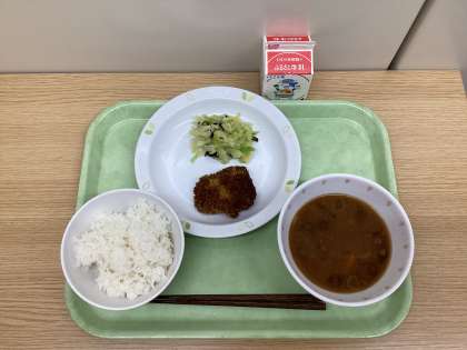 ごはん レバーカツ キャベツの塩昆布かけ なめこ汁 牛乳