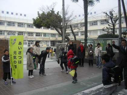 1月16日から20日までの間、若林小学校は「あいさつ運動」週間です。