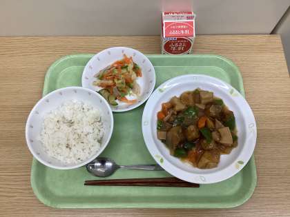 麦ごはん 白身魚の甘酢あん 白菜の中華サラダ 牛乳