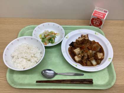 麦ごはん 家常豆腐 辣白菜 牛乳