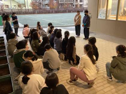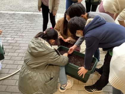 学校に緑を増やそうと、代表委員会と環境美化委員会で球根を植えました。2つの委員会で協力して植えた球根、花が咲くときがたのしみです。