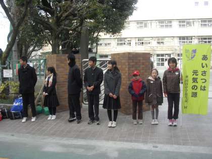 今日の「あいさつ運動」は、世田谷中学校と合同で行いました。