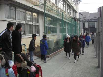 中学生に刺激されたようで、いつも以上に元気にあいさつをしていました。