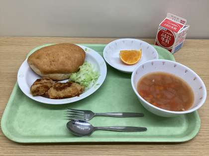 セルフフィッシュサンド ミネストローネ 夢オレンジ 牛乳