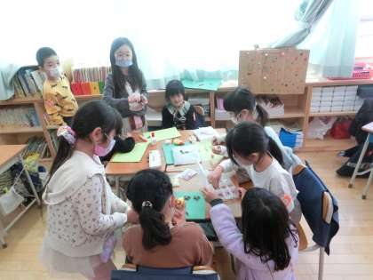 1年生が世田谷保育園の皆さんを「あきのわくわくランド」にご招待!工夫をこらして作ったお店屋さんで楽しんでもらっています!以前2年生に遊んでもらった経験がここでしっかりと生かされます!
