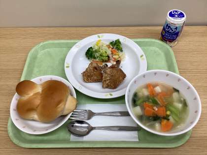 ミルクパン フライドチキン カラフルサラダ ABCスープ ジョア